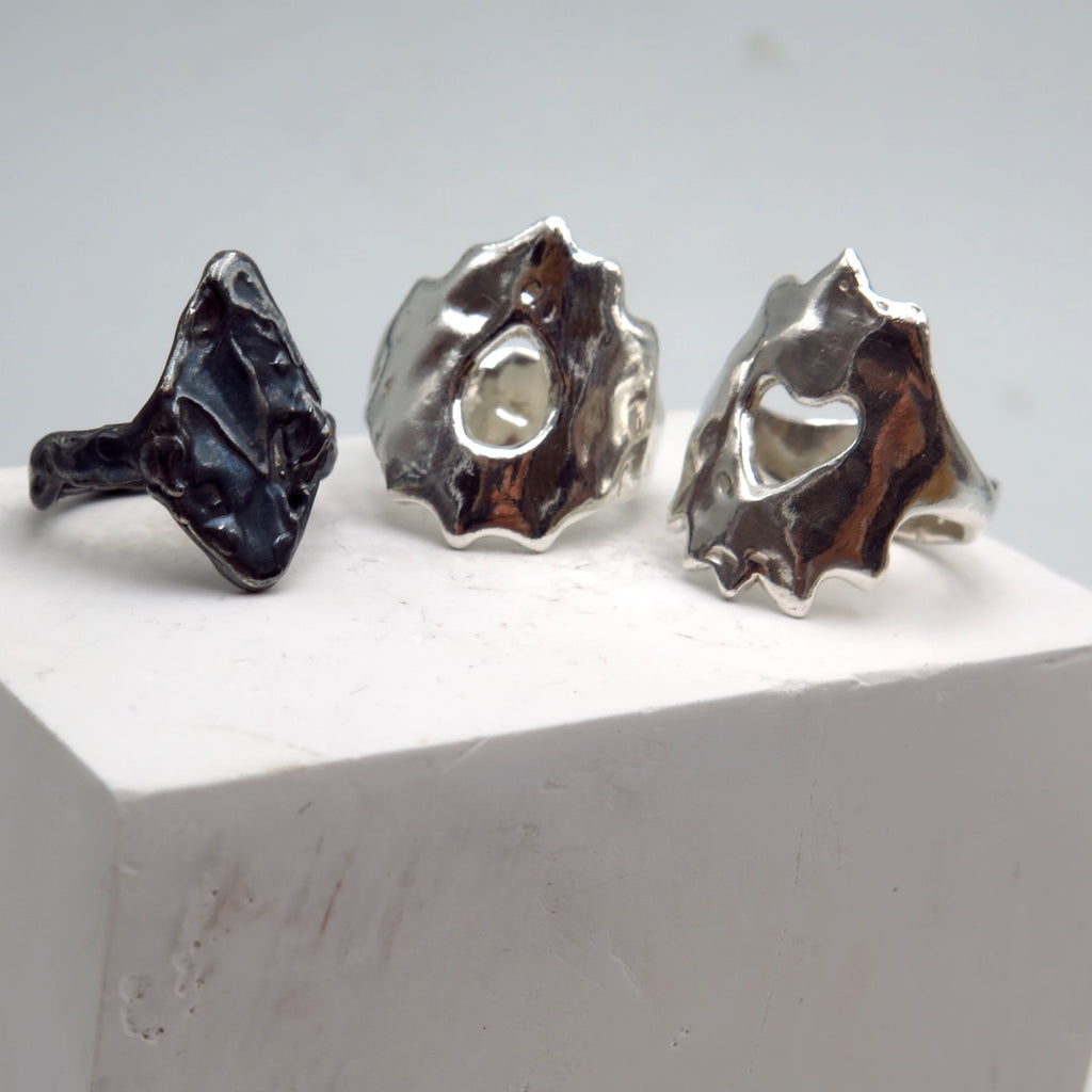 Lost Tear is a sculptured shield ring made with the ancient lost wax carving technique. Cloudy dark witchy ring!