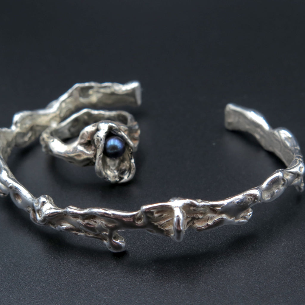 Stormy sculptural silver bracelet