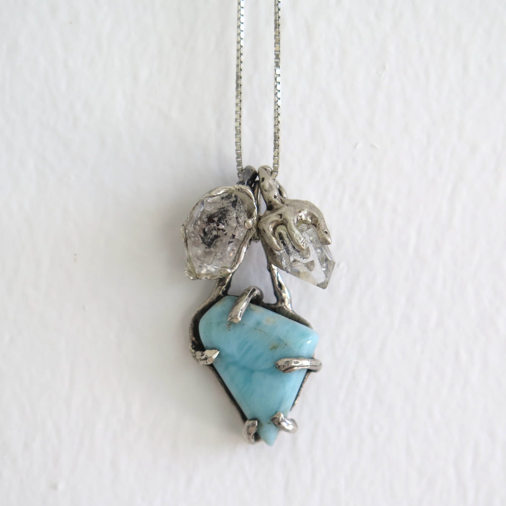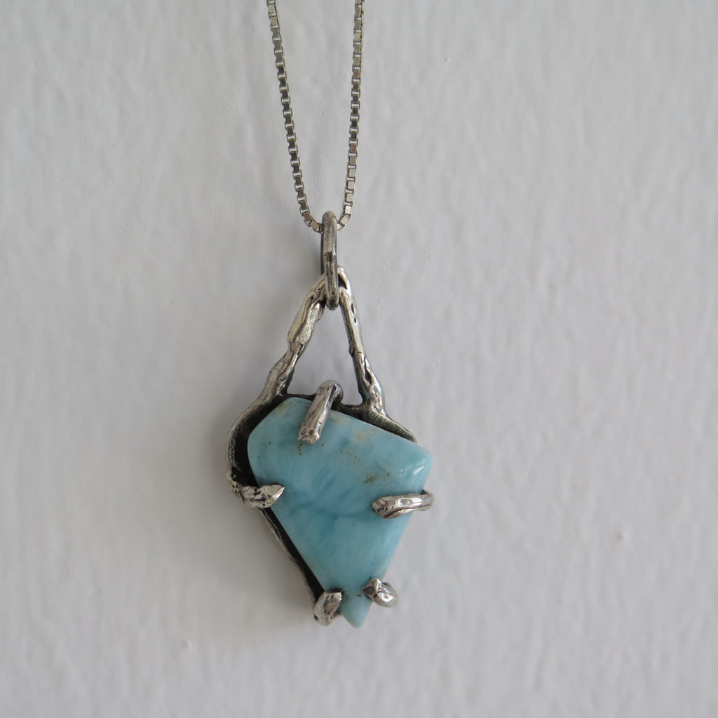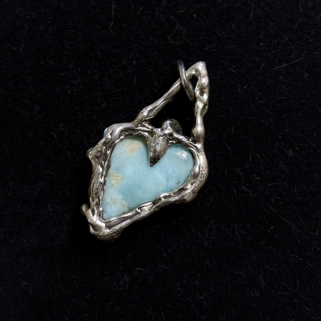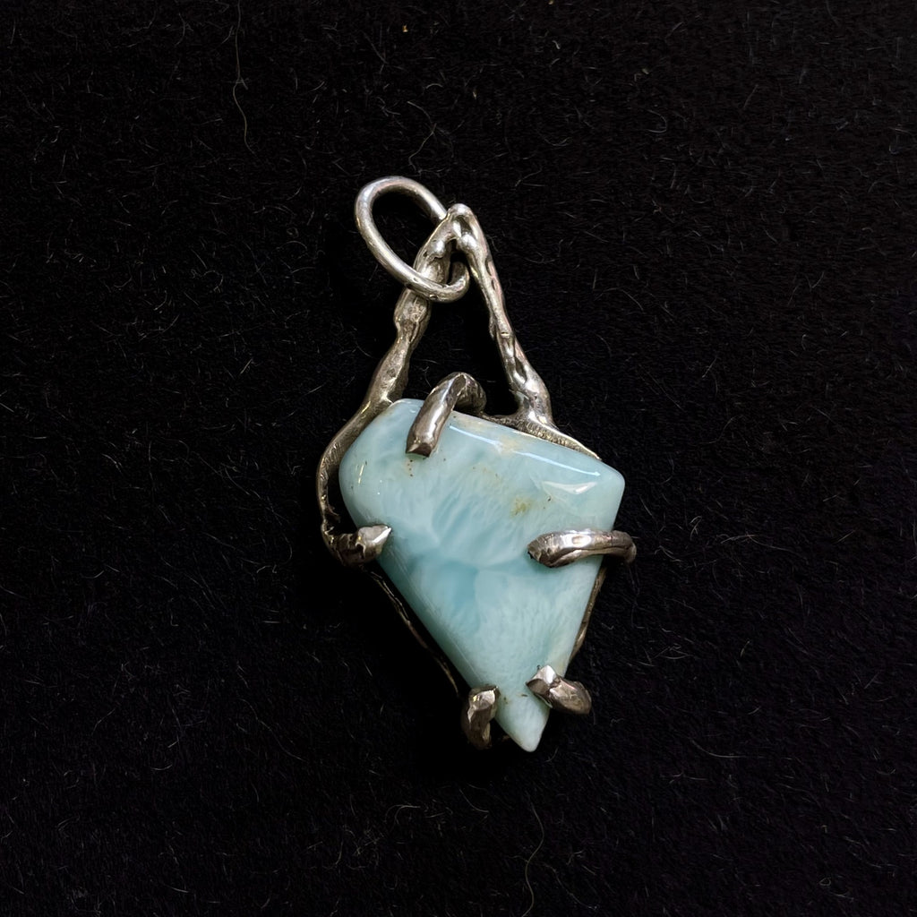 Sculptural Creature is a unisex pendant made with the ancient lost wax technique, especially for the specific stone. Beautiful charm with edgy design handmade in sterling silver and Larimar gemstone.