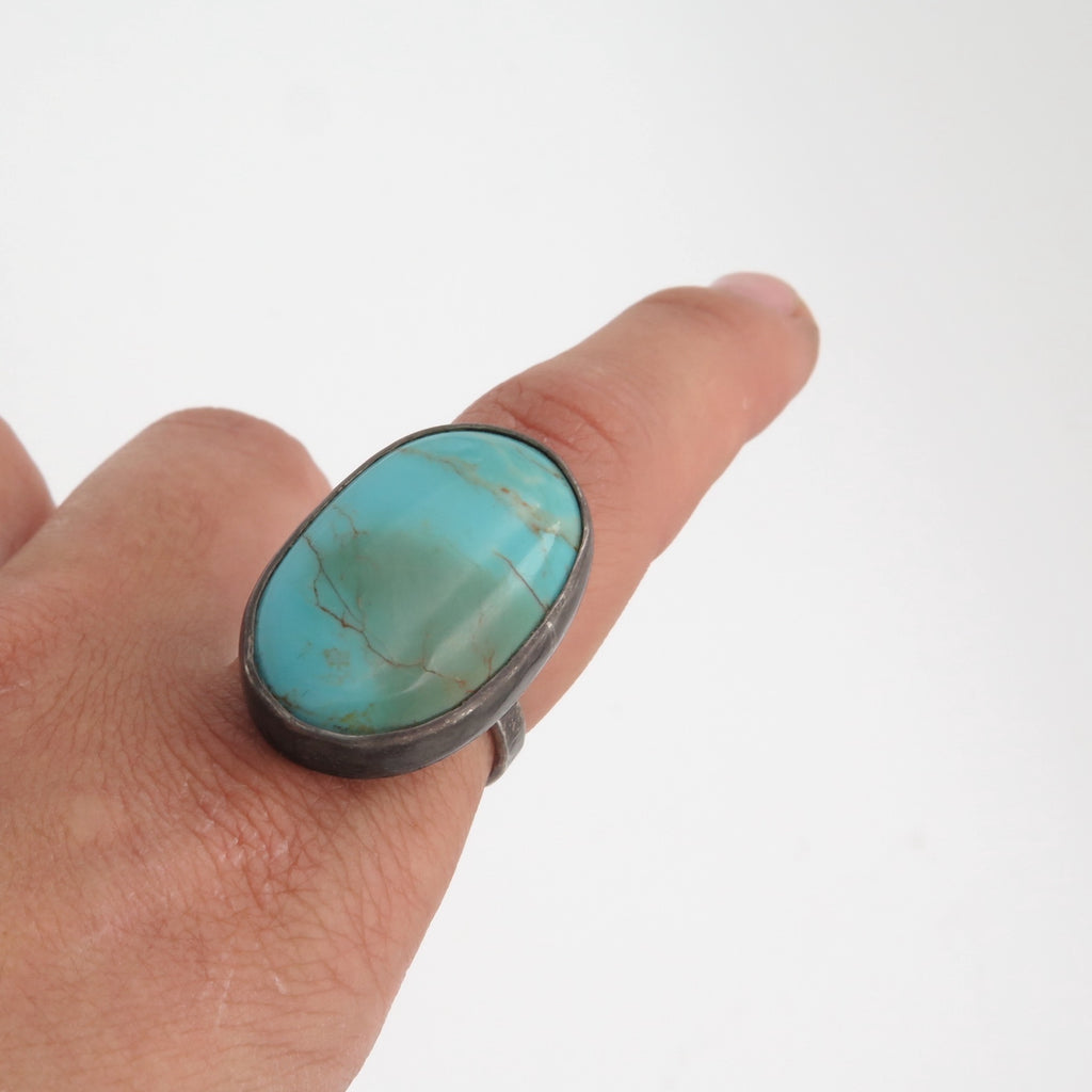 One of a kind, natural Turquoise, gemstone ring with unique pattern and veins.