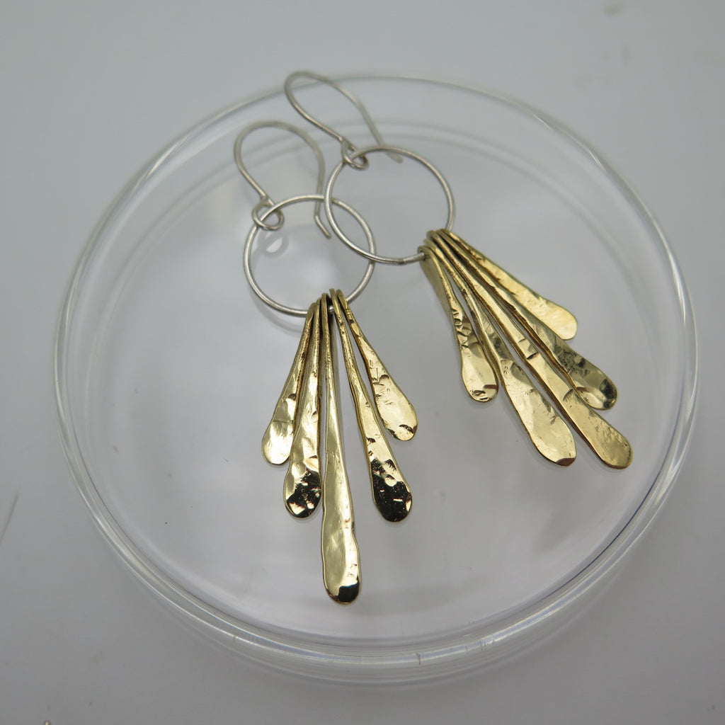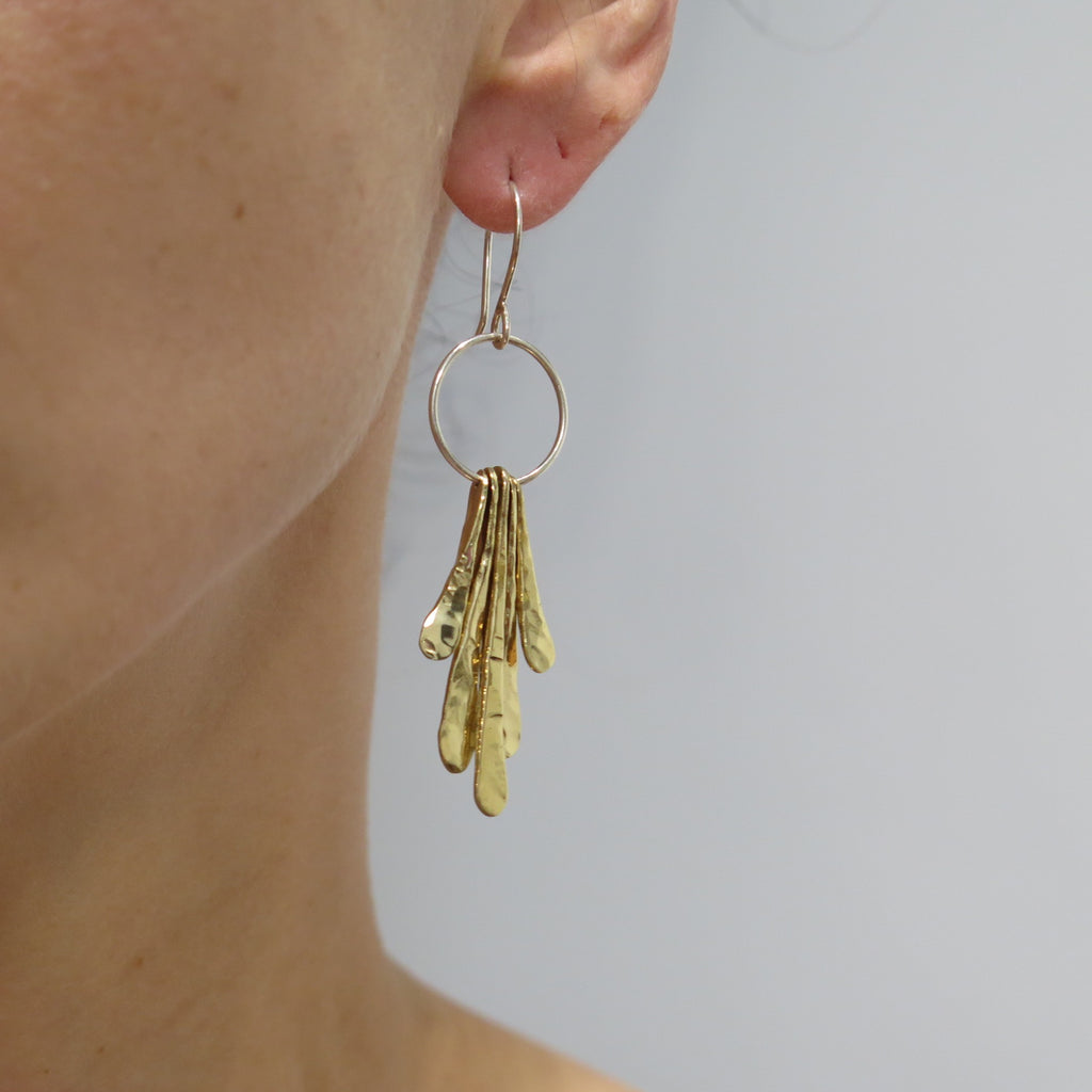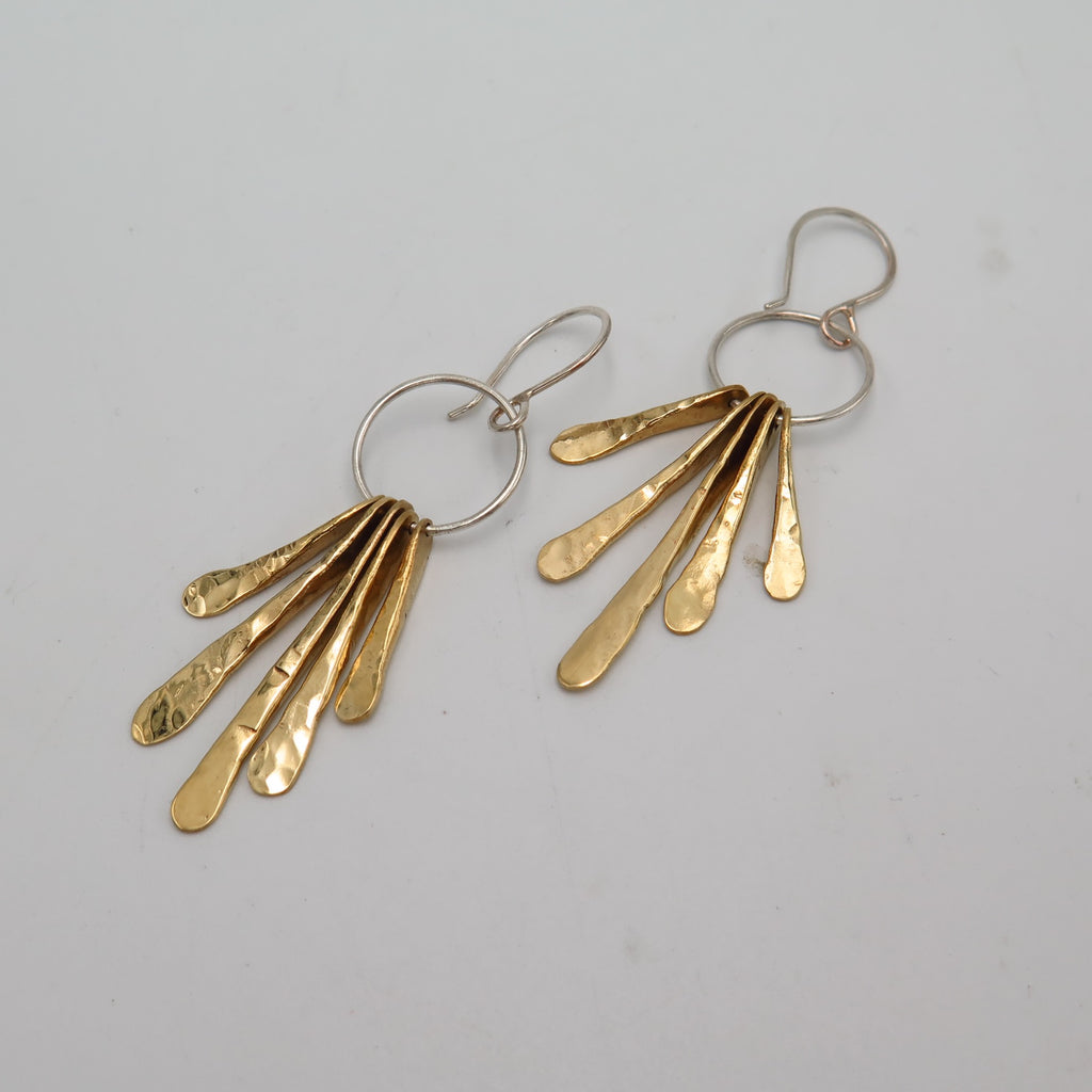 Hammered by hand, Long Leaf earrings are handmade in bronze and silver. Lightweight and eye catching. Ιt will make your festive styling extra shinny.