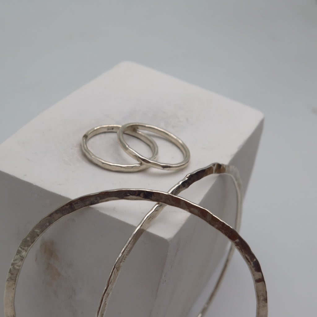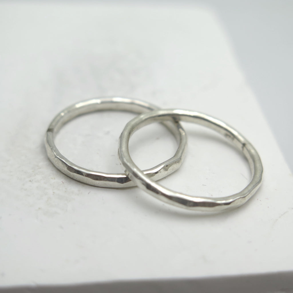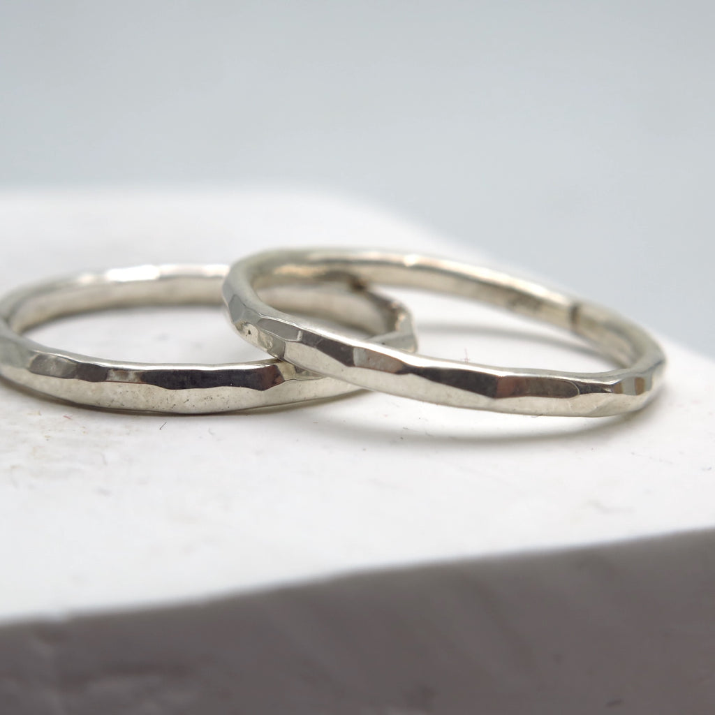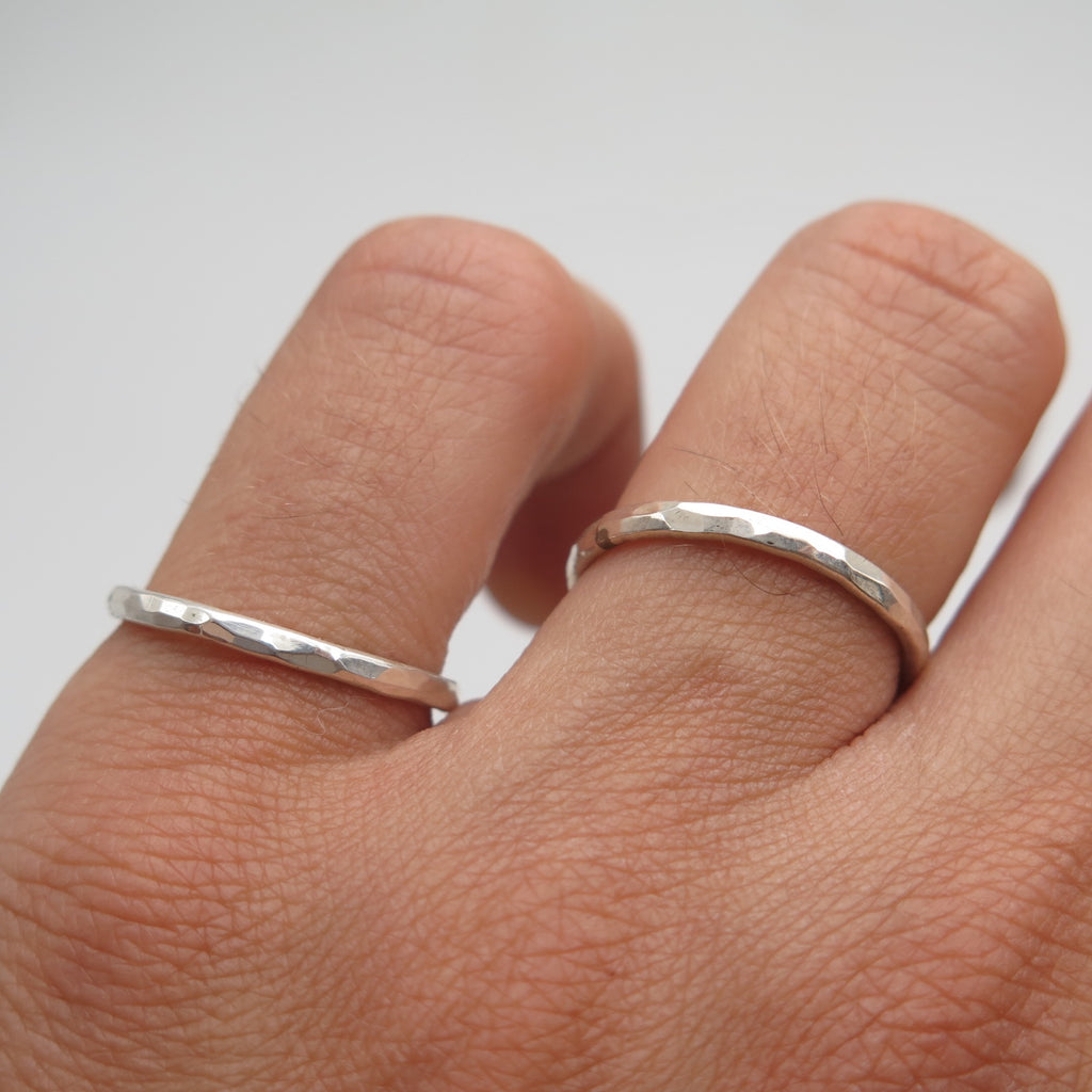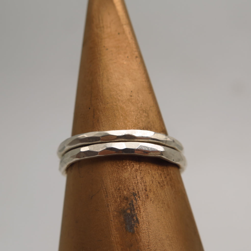 Forged by hand, this silver ring band with multifaceted texture, makes a playful sparkling reflection with the sun.