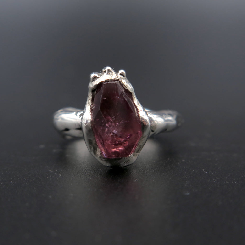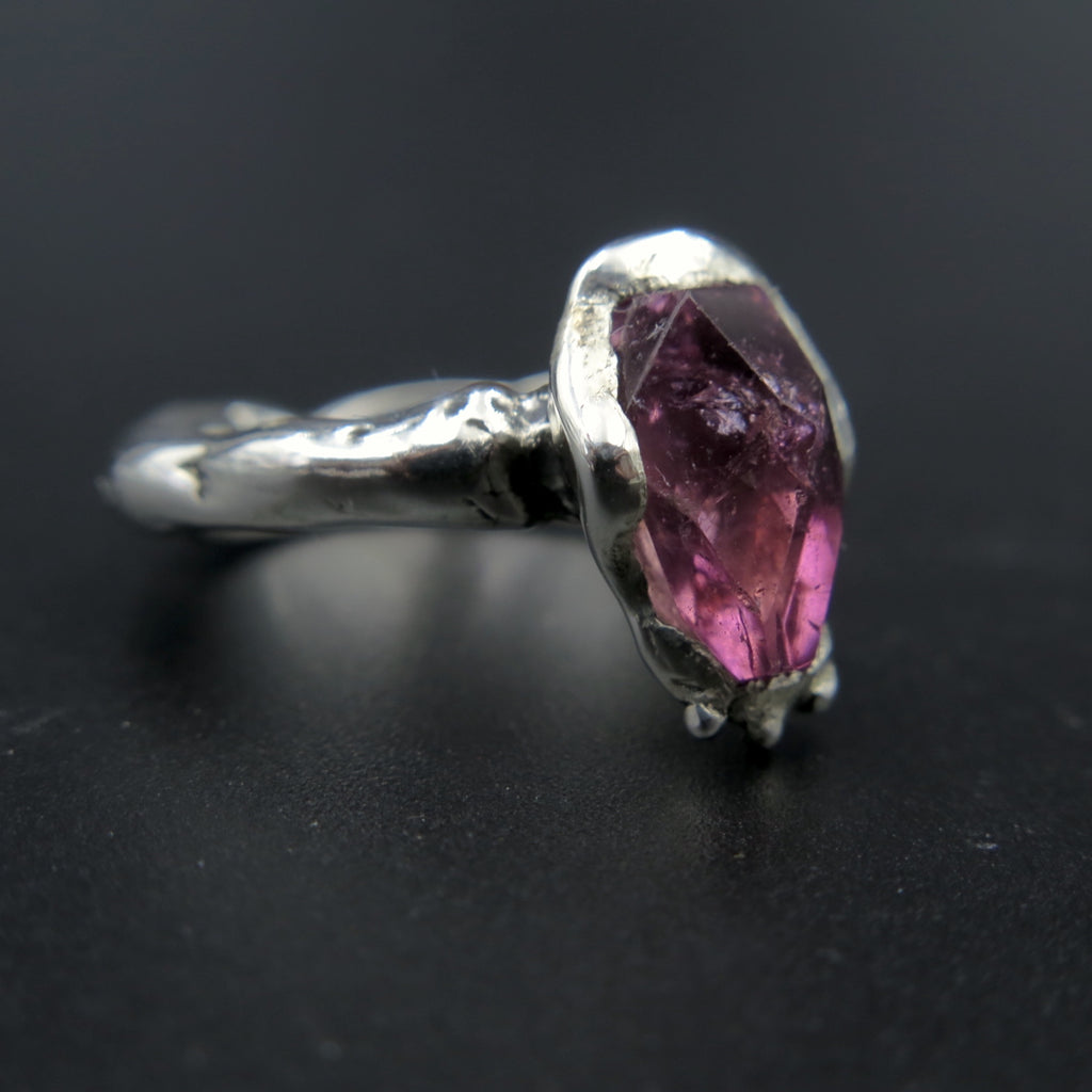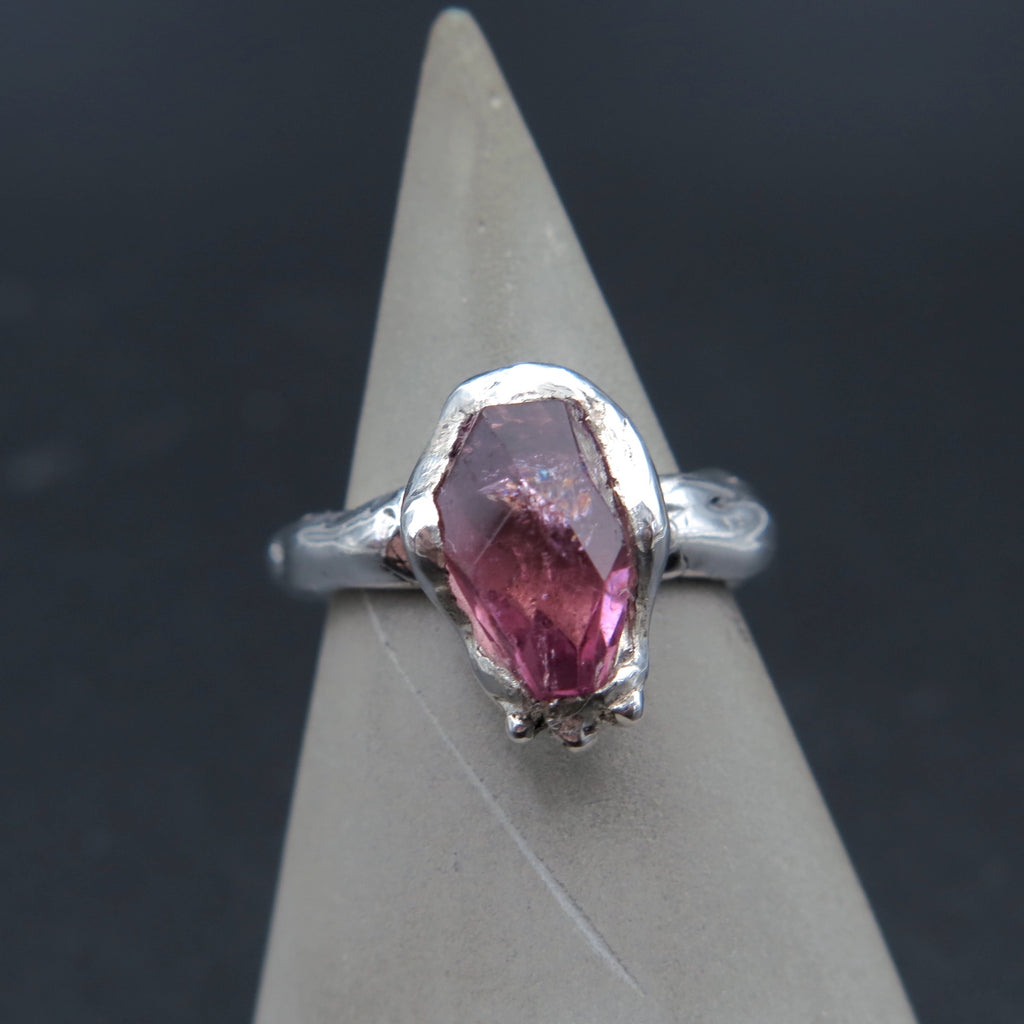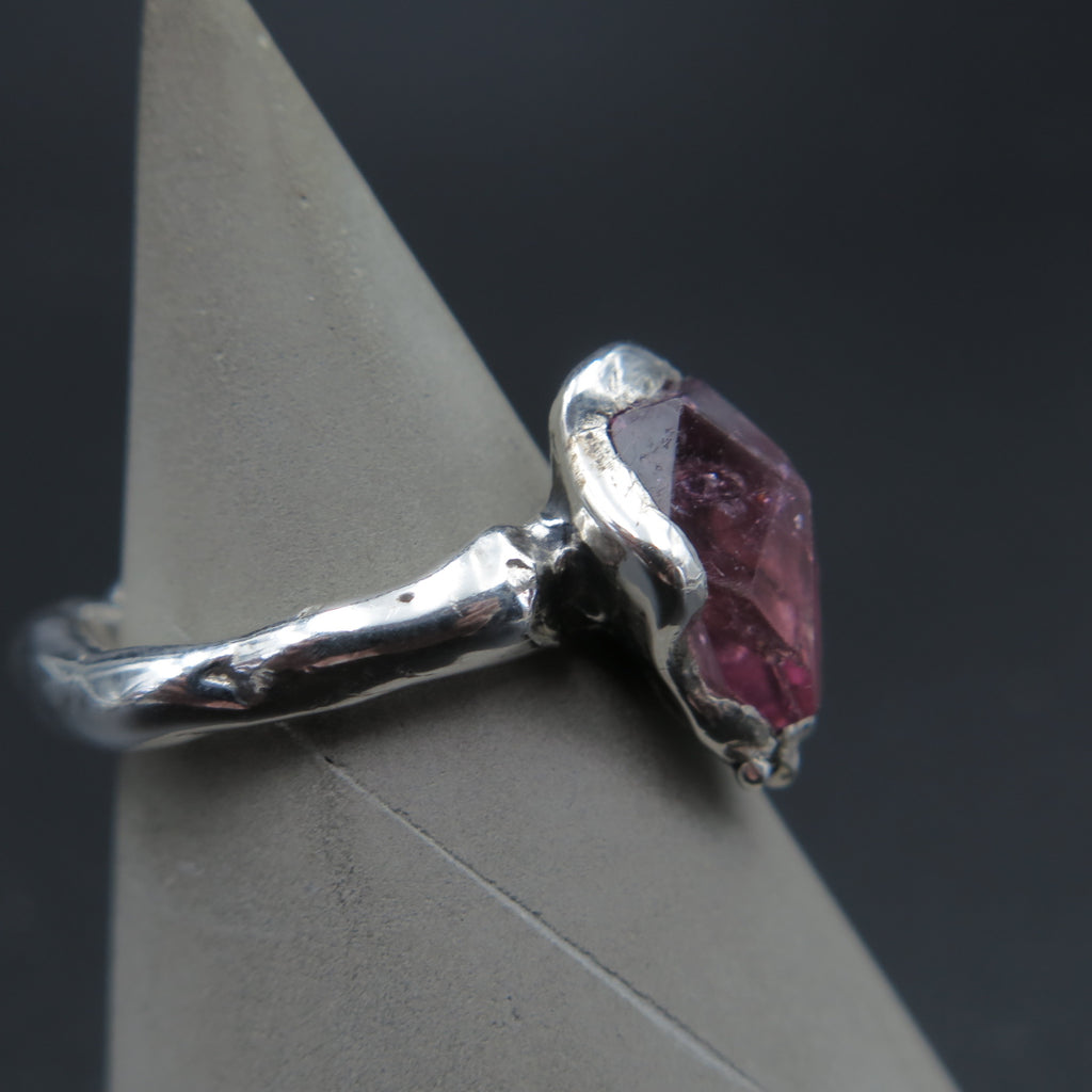 Eros the god of love! Pink Tourmaline ring handmade with silver. One of a kind ring made with the lost wax carving technique especially made for the specific hot pink vibrant stone.