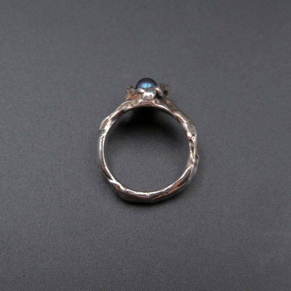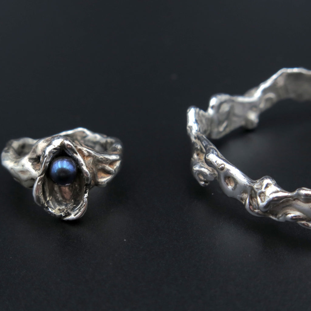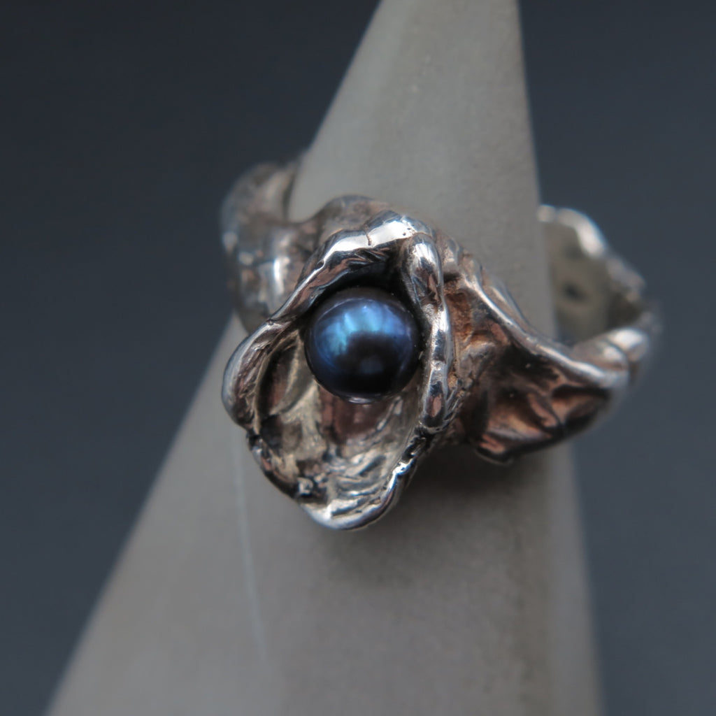 Mermaid style ring with grunge romantic design like an ancient treasure and organic shaped unique details, like it's melting on your finger