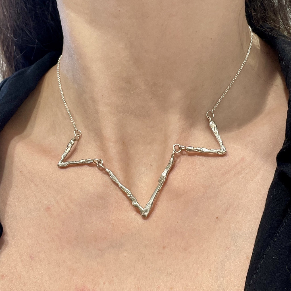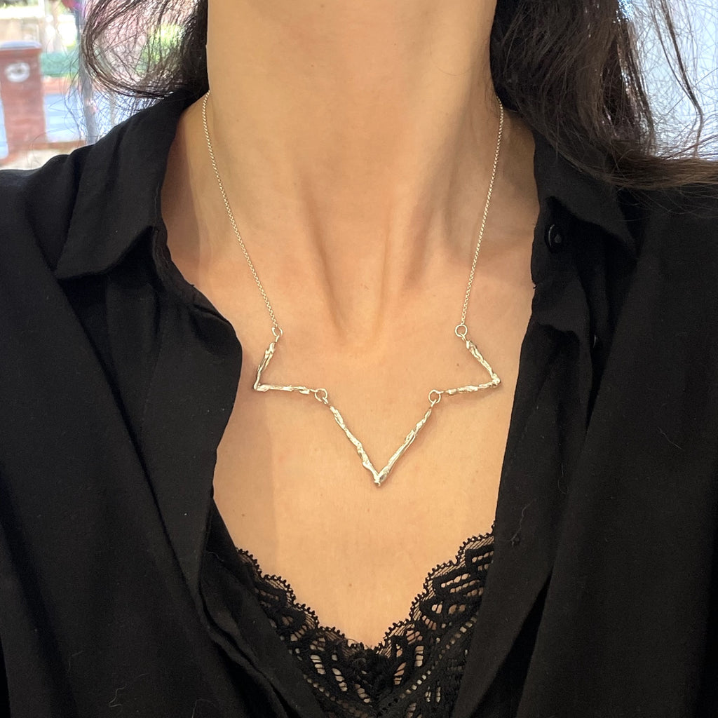 One of a kind pendant handmade with the ancient lost wax carving technique. Grunge romantic micro sculptures with organic shape and details of melted metal. It's form was inspired by the glowing rays of sun softly touching your collar bones.