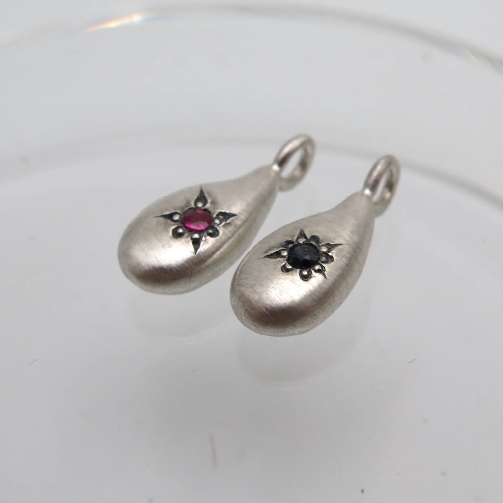 Rainy Sky is a handmade charm, casted in sterling silver with  hand set colourful cubic zirconia. Cute little droplet design with organic shape like a drop of water.