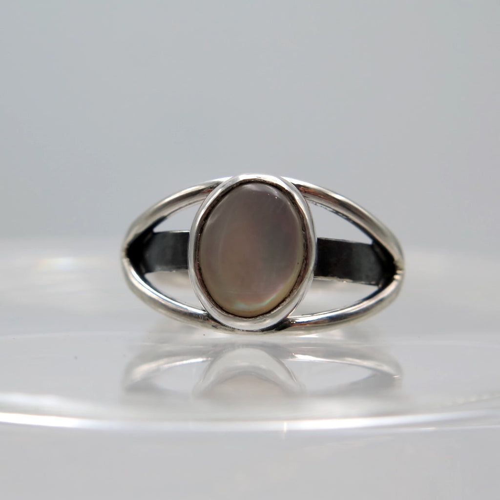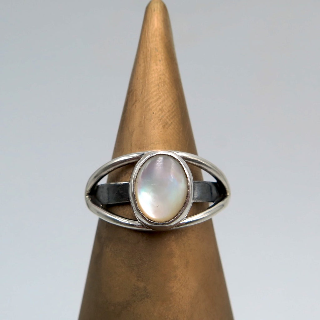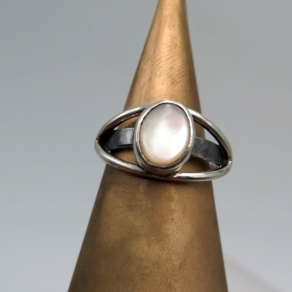 The Pure Eye ring is handmade with silver and Mother of pearl. Elegant design, easy to wear with open and adjustable band!