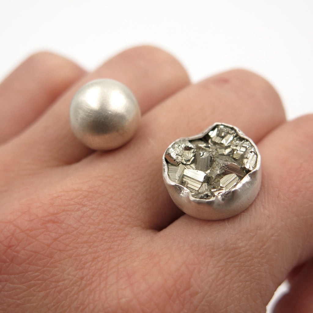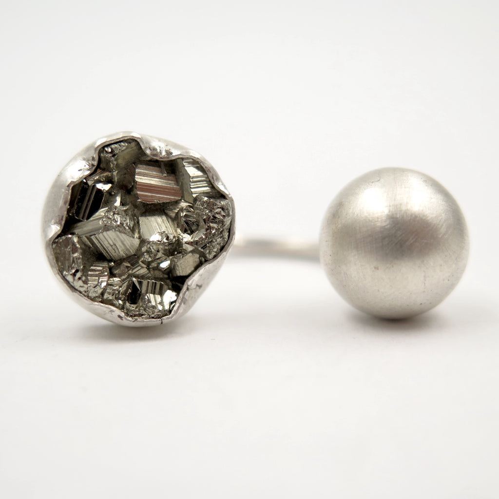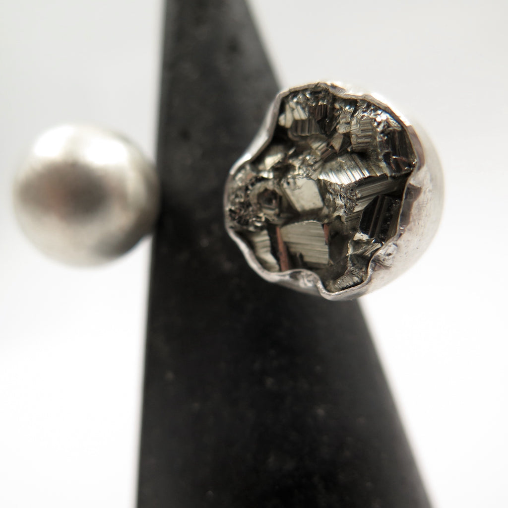 One of a kind ring handmade with matte silver and Pyrite gemstone.