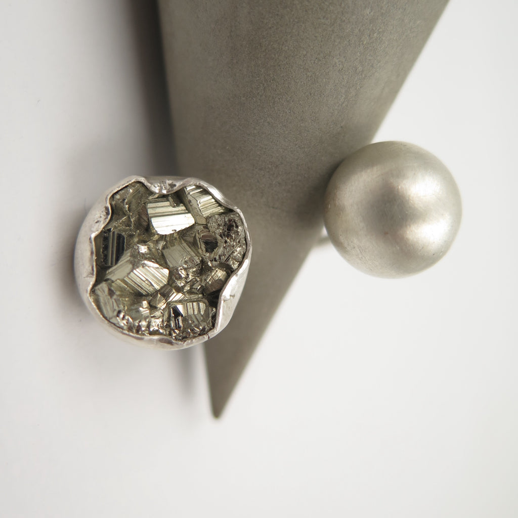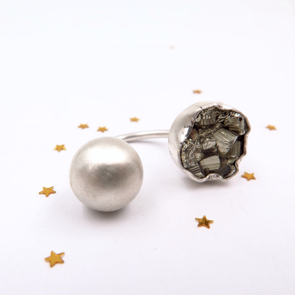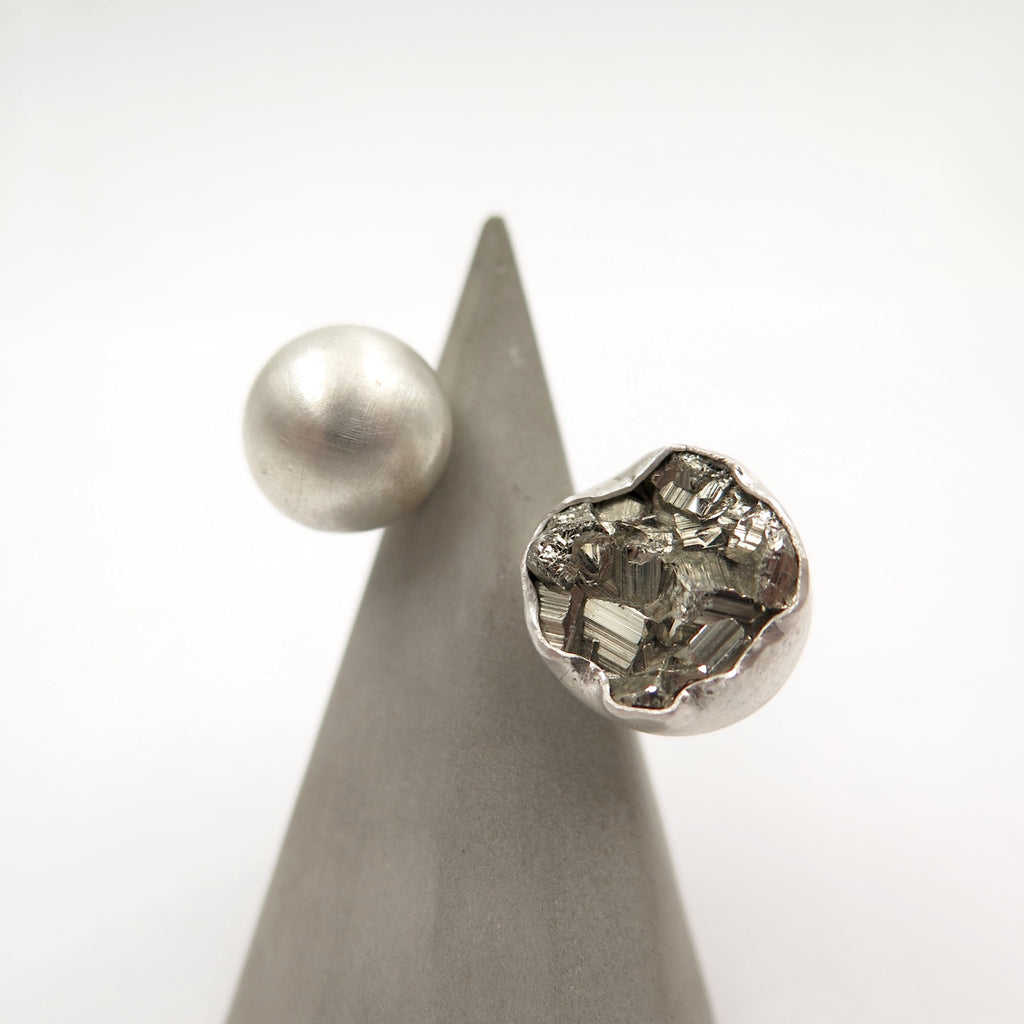 One of a kind ring handmade with matte silver and Pyrite gemstone.