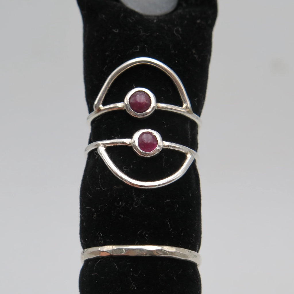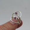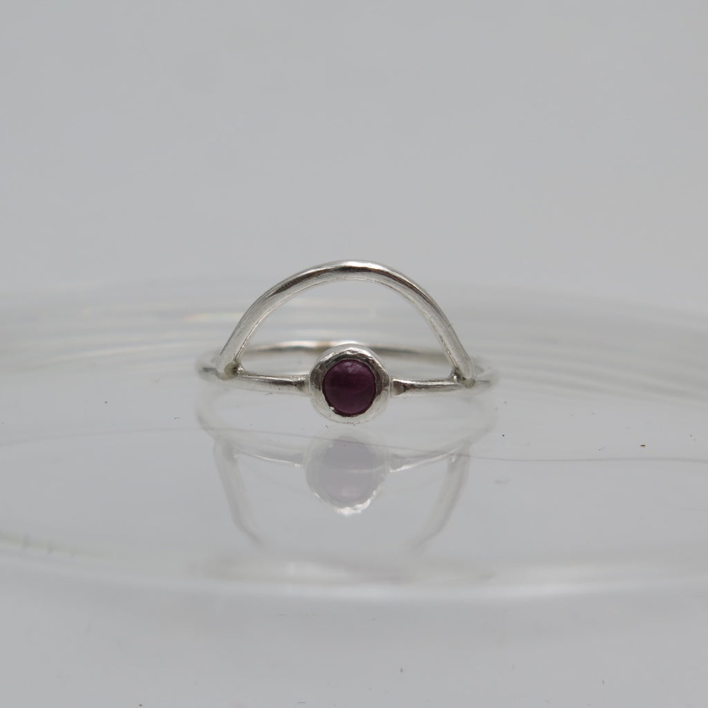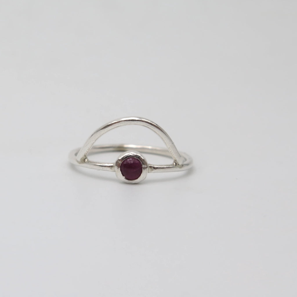 One of a kind ring handmade with silver and Ruby gemstone. Feminine, dainty geometric design you can wear easily everyday and combine with other rings.