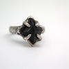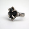 Sculptural Black Lord ring made with the ancient lost wax casting technique especially for this specific stone. A brutalist edgy ring with a faceted Onyx gemstone set in solid silver with dramatic shaped prongs. Romantic gothic style with grunge organic details perfect for an alternative solitaire and engagement ring.