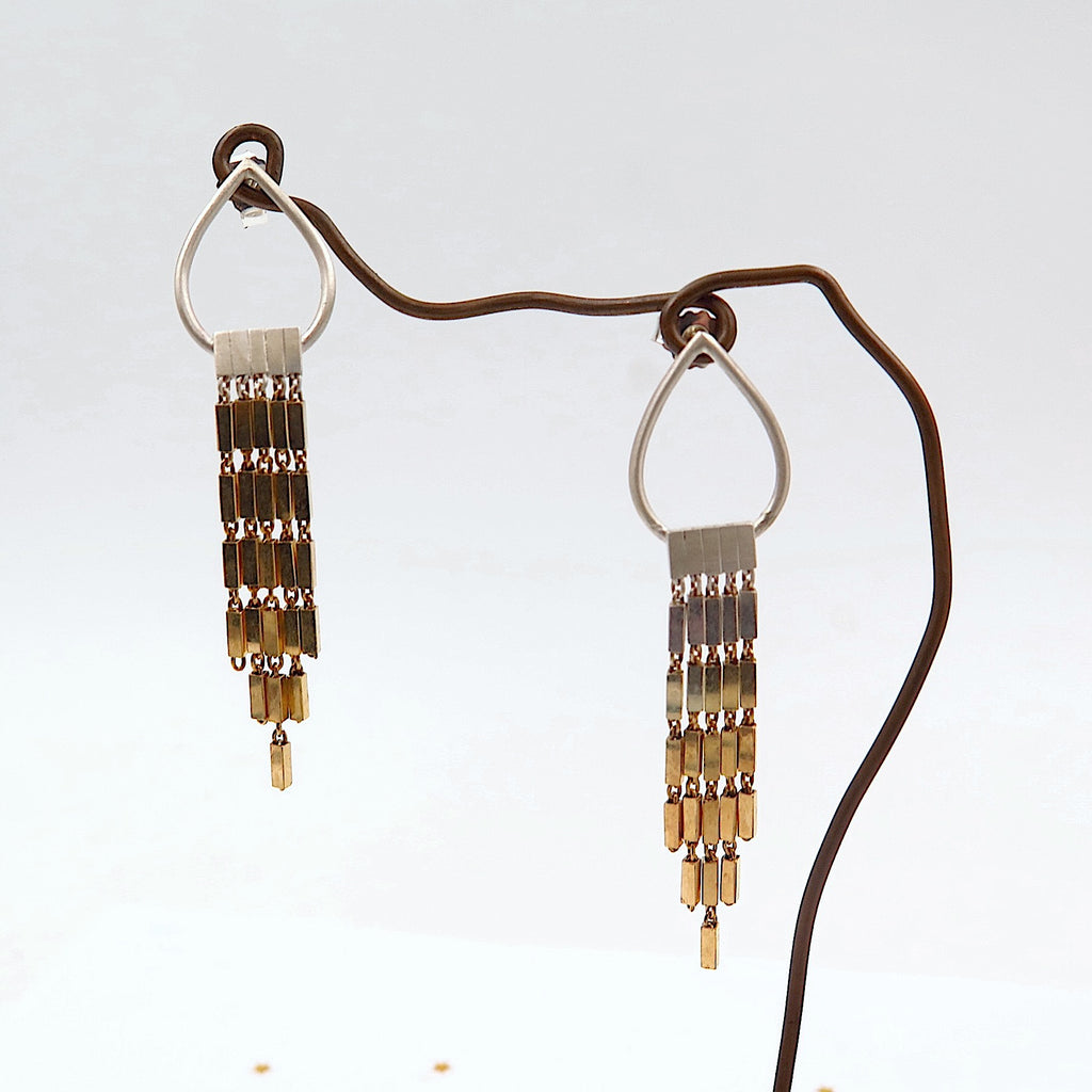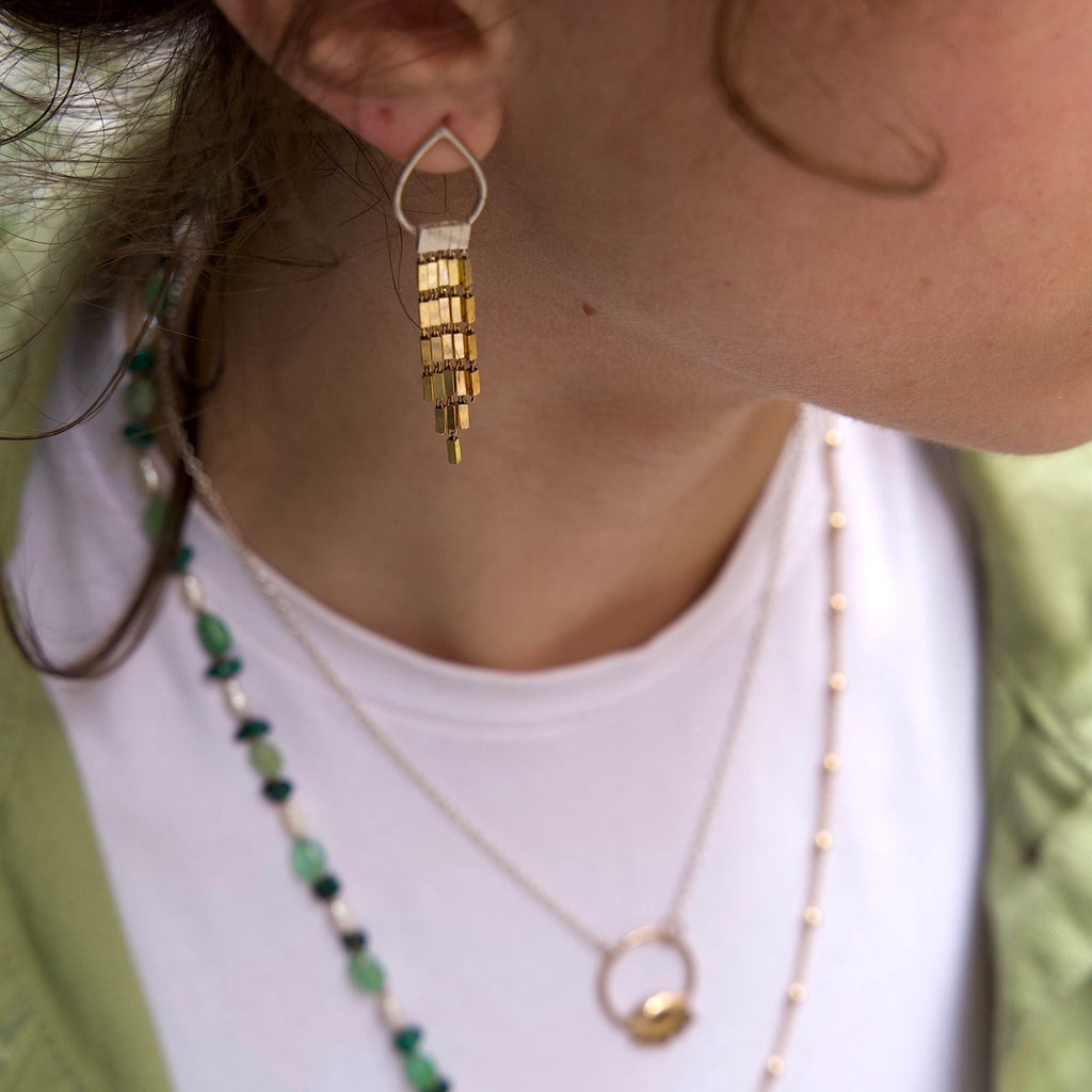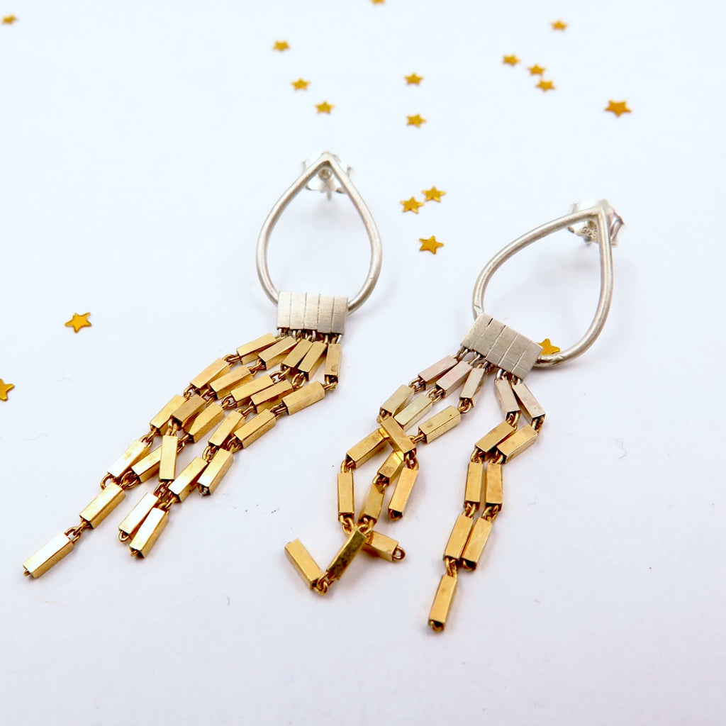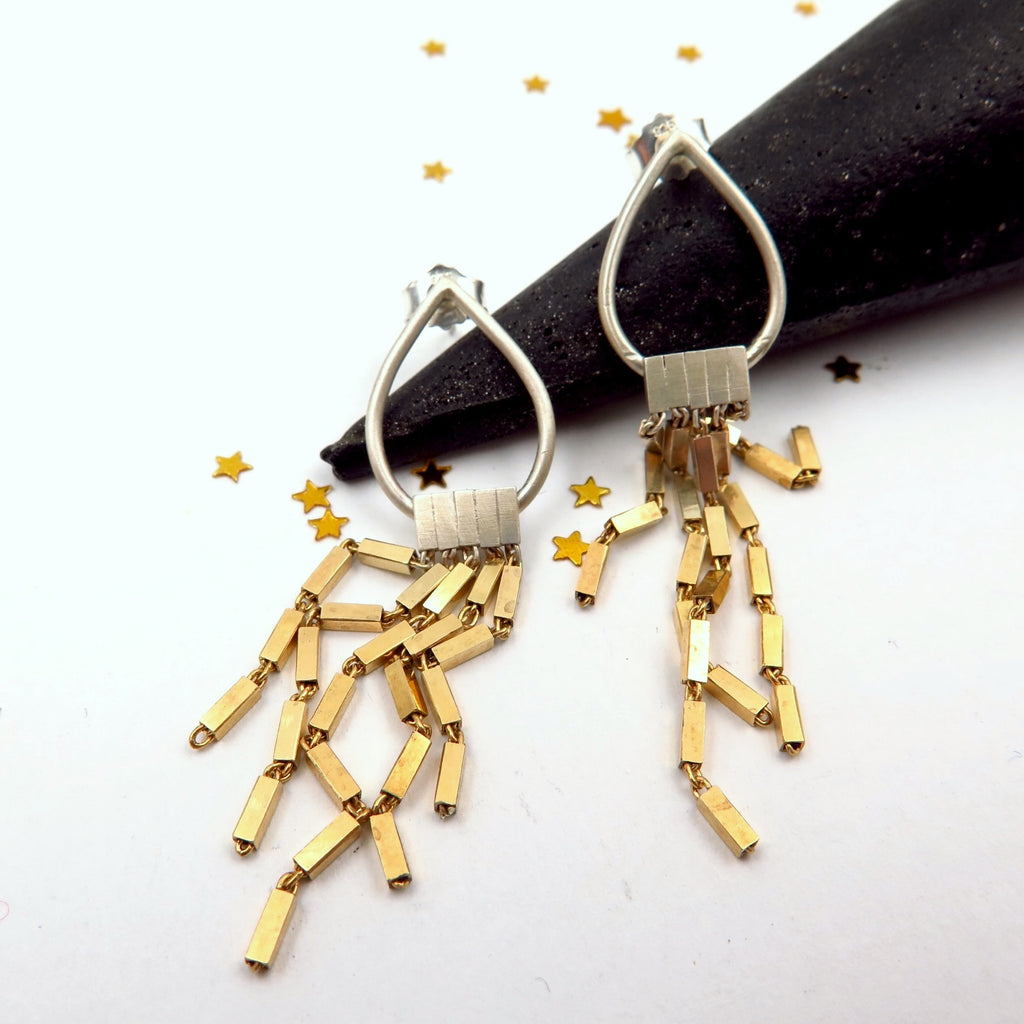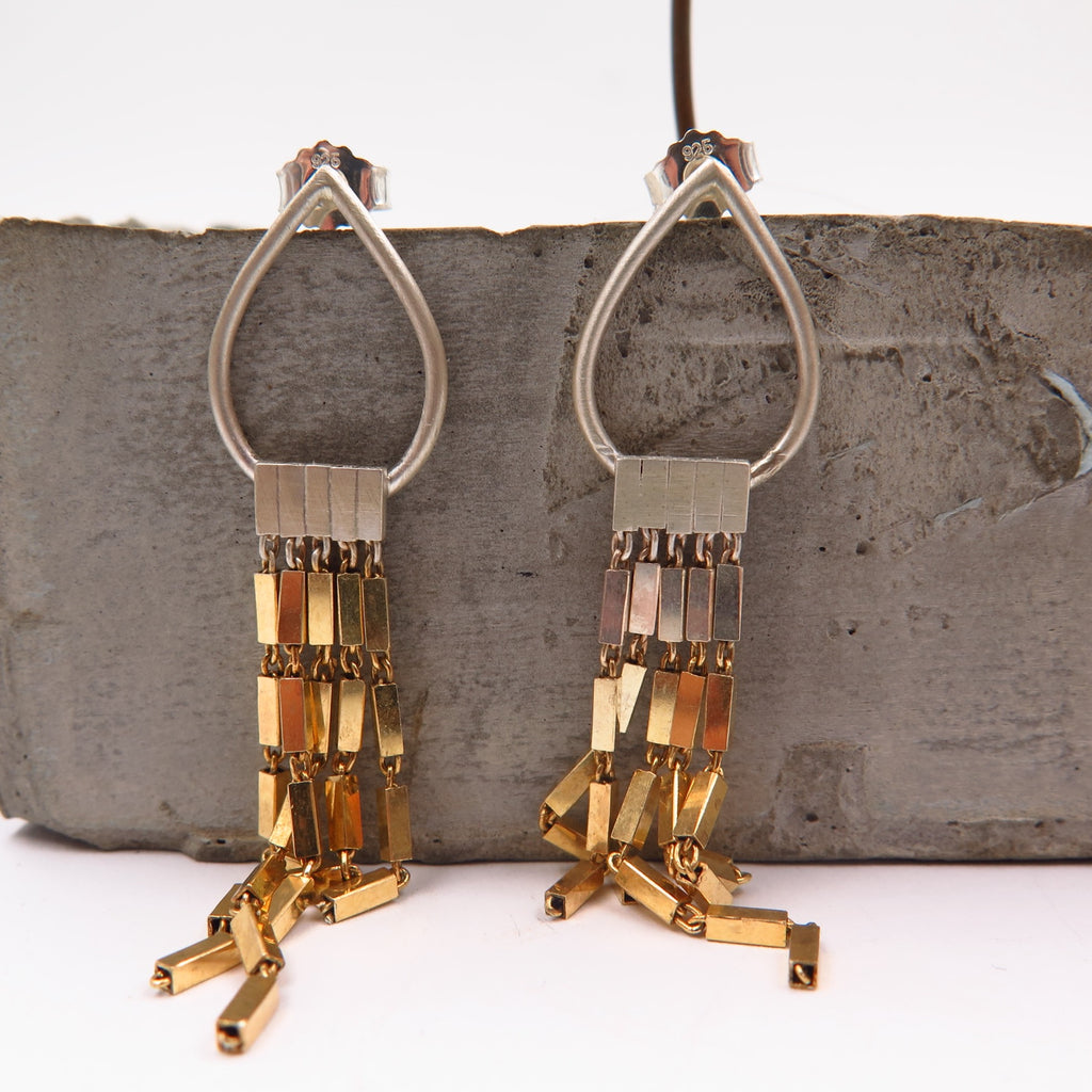 Sparkling Medusa single stud earring in silver and gold plated degrade chain. Luxurious edgy design.